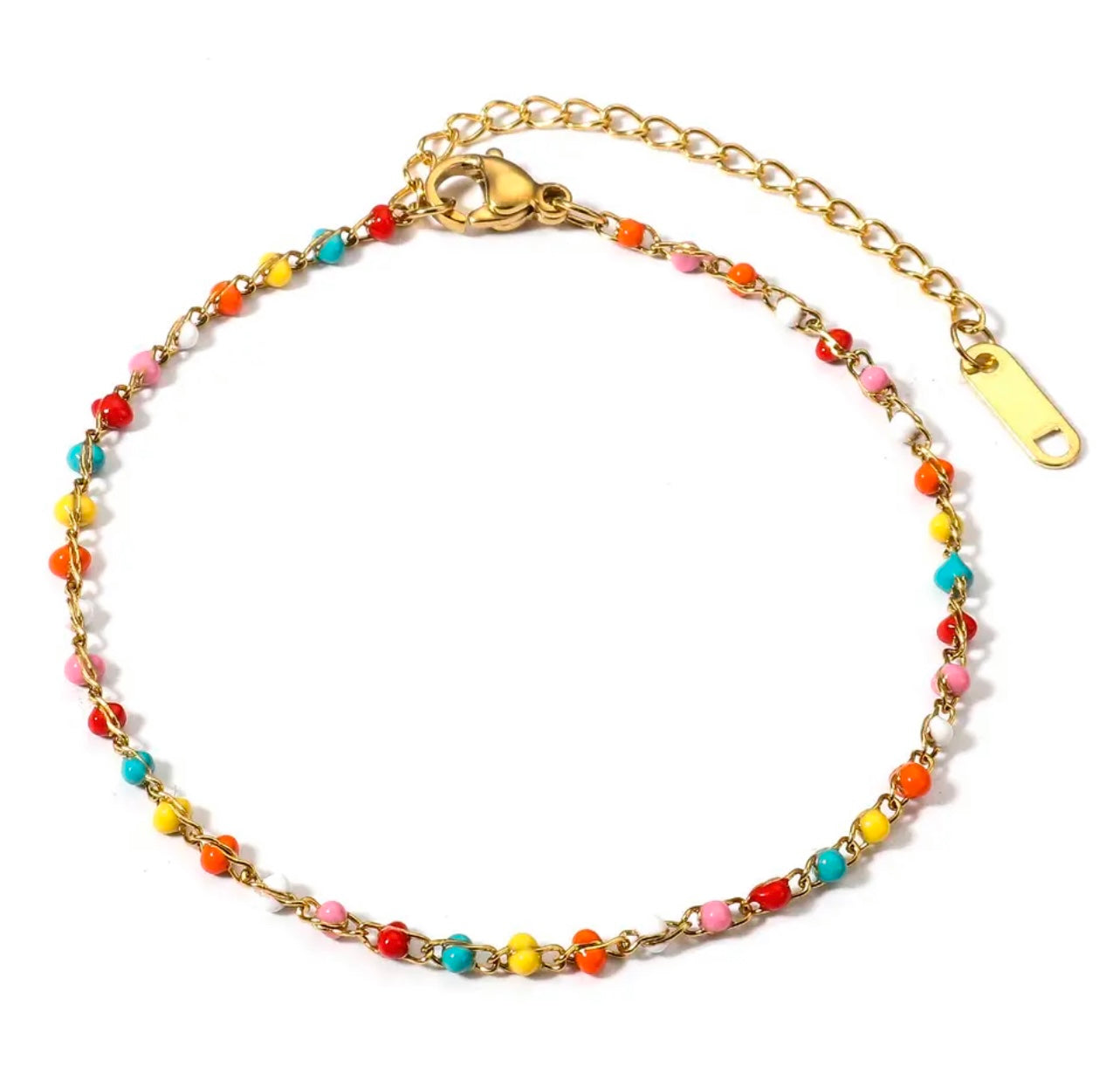 Guldbelagt kirurgisk stål, nikkelfri og vandfast. Smykket tåler vand, sved, parfume og mister ikke farven