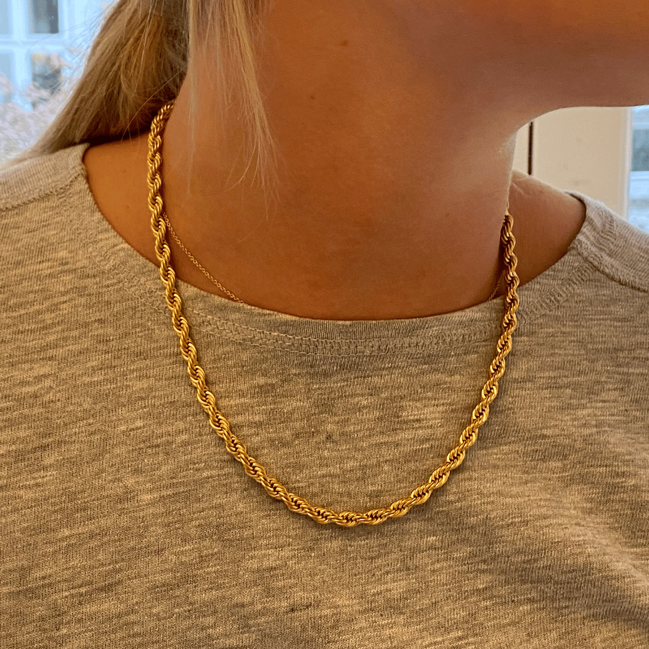 18k guldbelagt kirurgisk stål, nikkelfri og vandfast. Smykket tåler vand, sved, parfume og mister ikke farve
