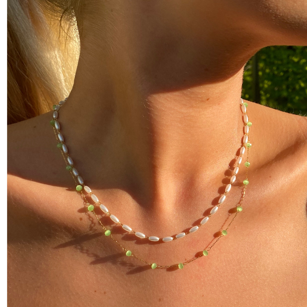 18k guldbelagt kirurgisk stål, nikkelfri og vandfaste. Smykket tåler vand, sved, parfume og mister ikke farven