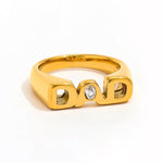 Guldbelagt kirurgisk stål. Ringen er vandfast og mister ikke farven