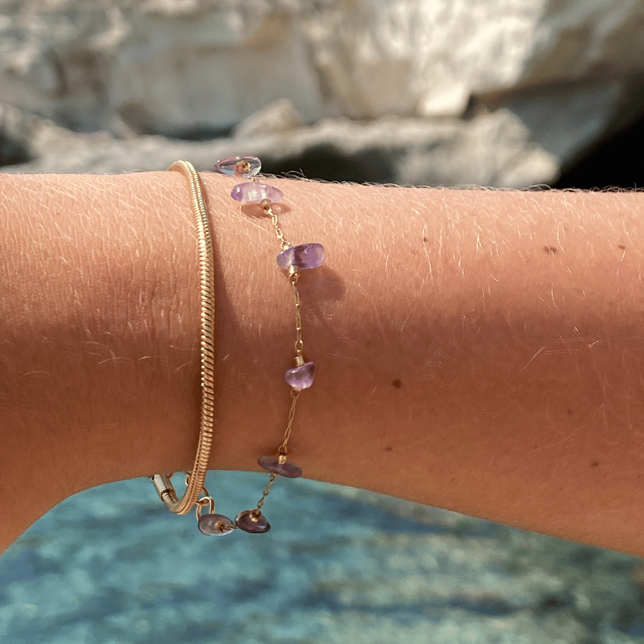 18k guldbelagt kirurgisk stål, nikkelfri og vandfast. Smykket tåler vand, sved, parfume og mister ikke farven