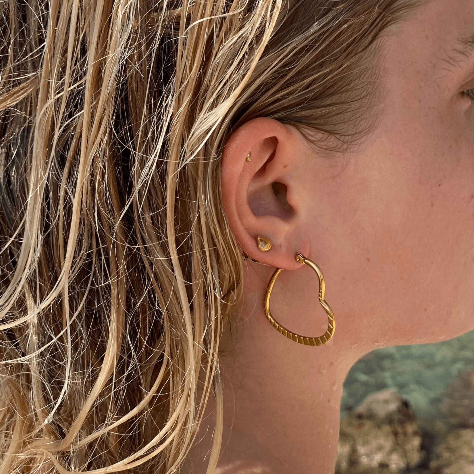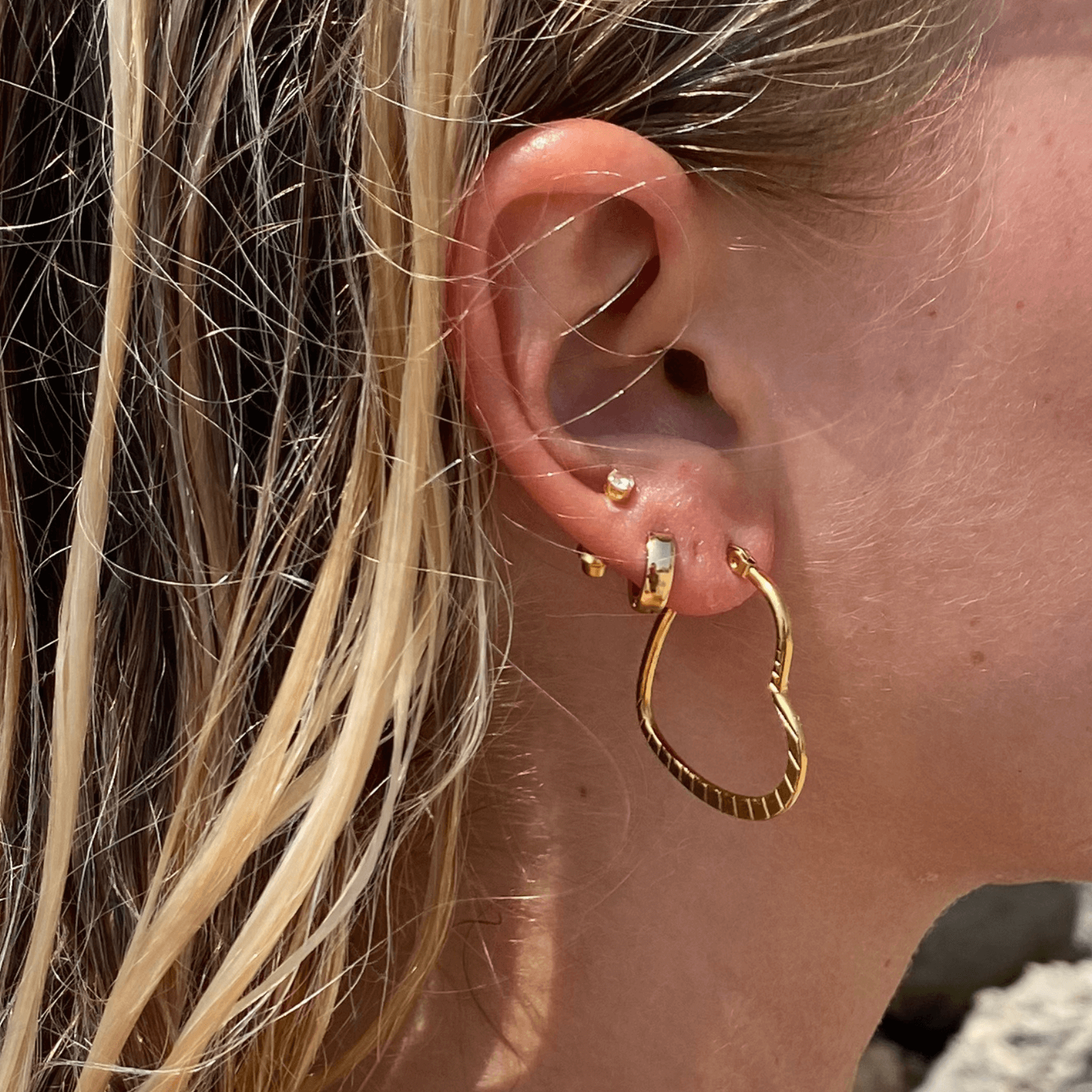 18k guldbelagt kirurgisk stål, nikkelfri og vandfast. Smykket tåler vand, sved, parfume og mister ikke farven