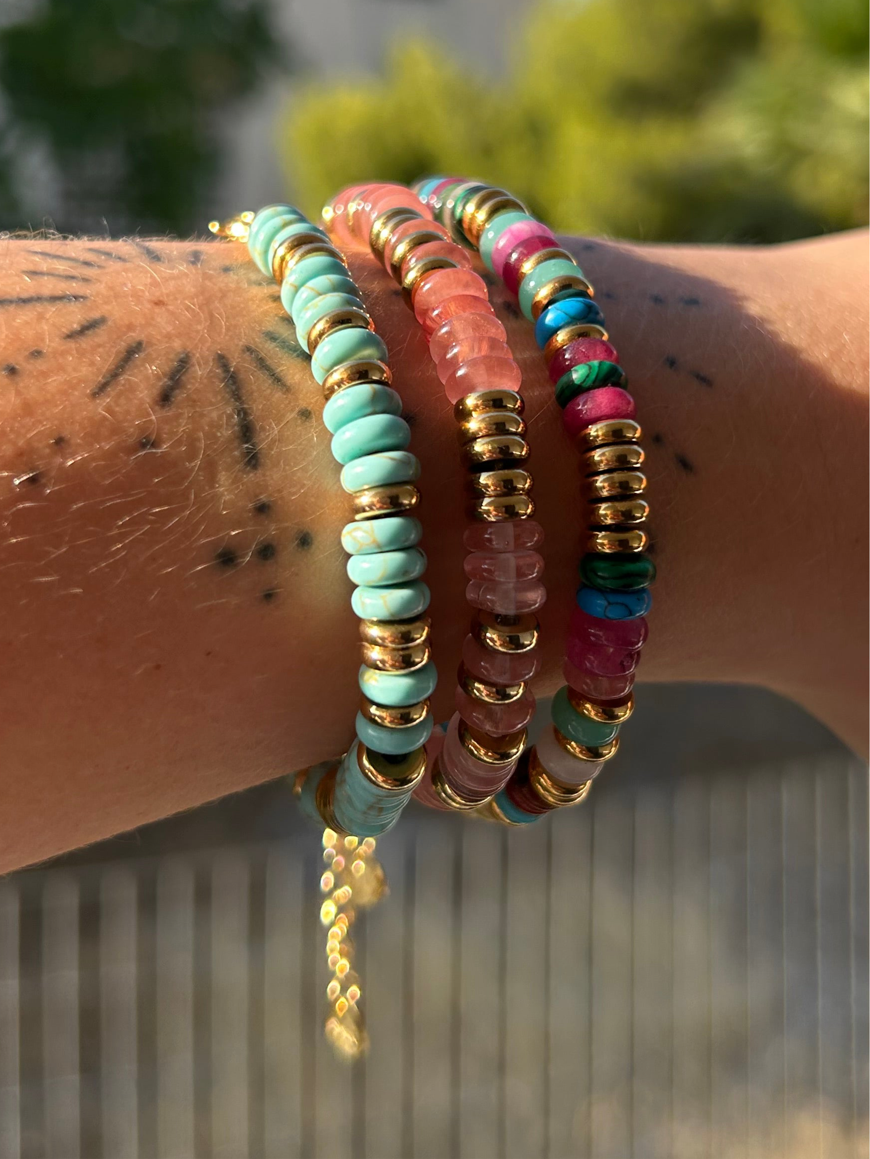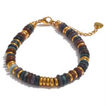 Natursten og Guldbelagt kirurgisk stål.