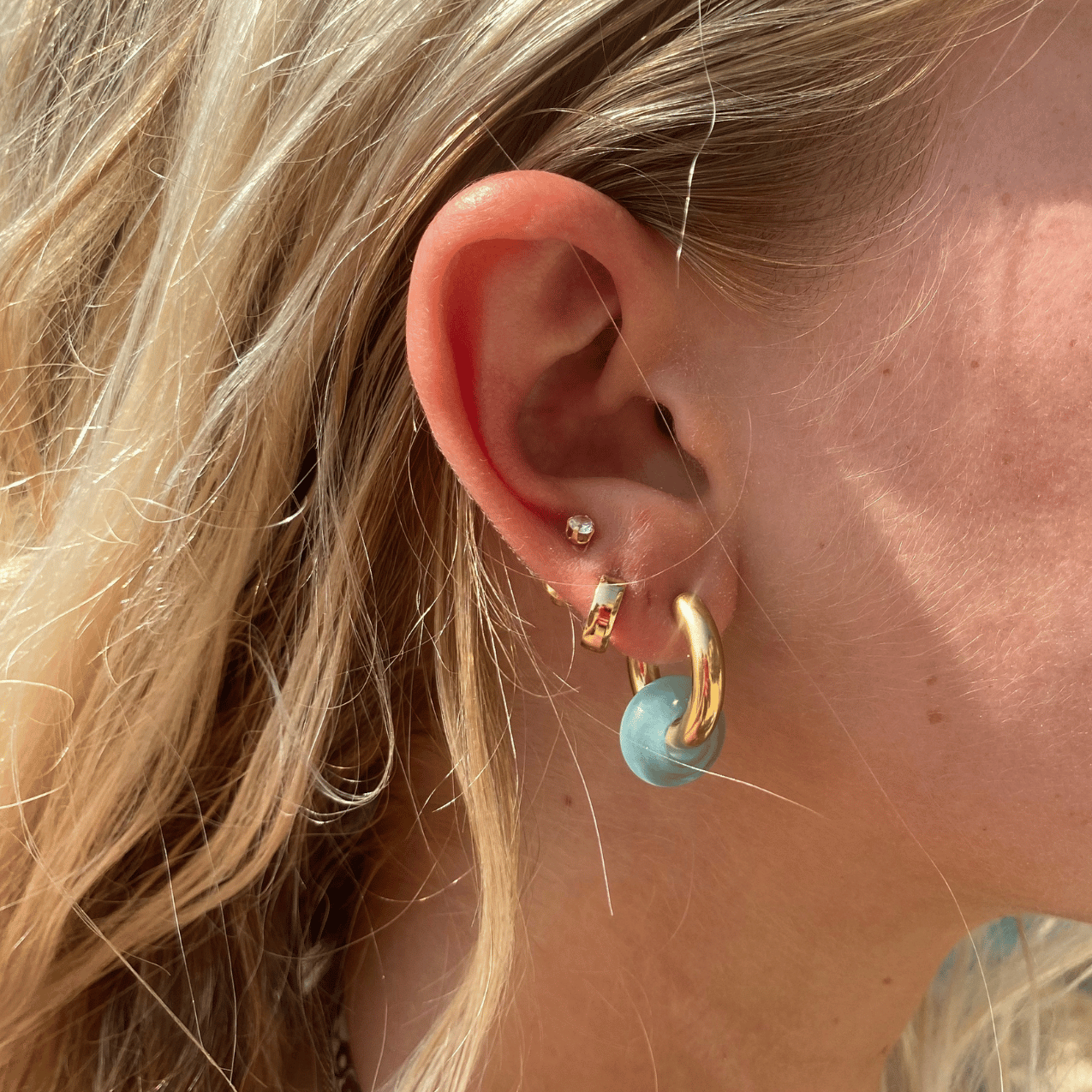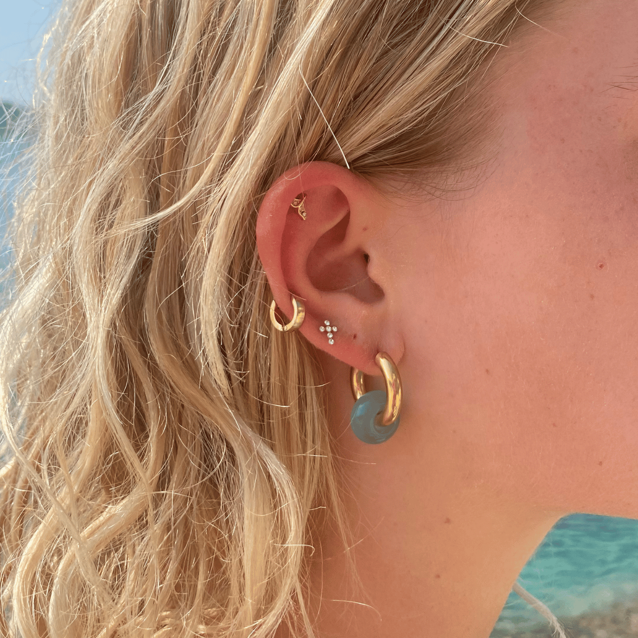 18k guldbelagt kirurgisk stål, nikkelfri og vandfast. Smykket tåler vand, sved, parfume og mister ikke farven