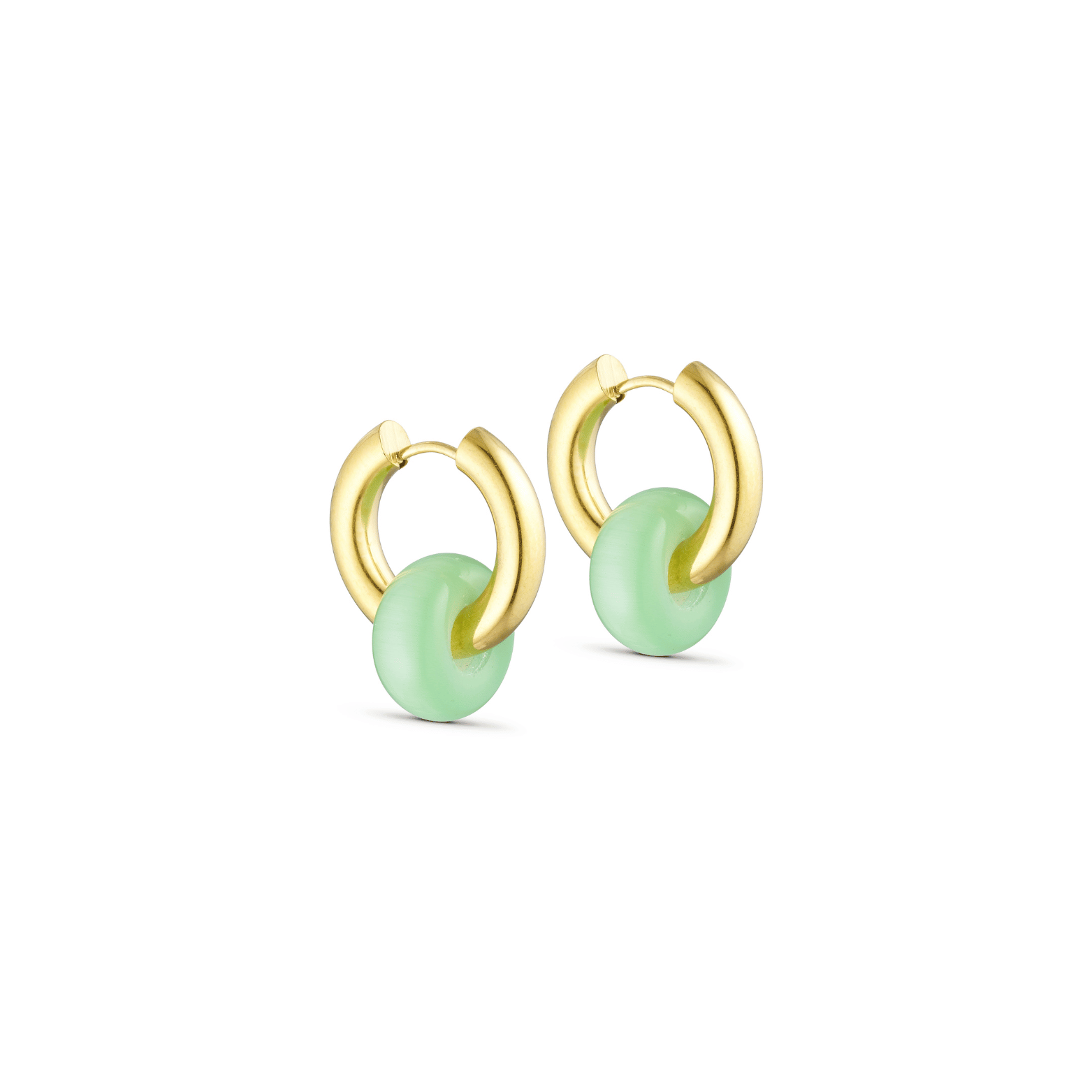 18k guldbelagt kirurgisk stål, nikkelfri og vandfast. Smykket tåler vand, sved, parfume og mister ikke farven