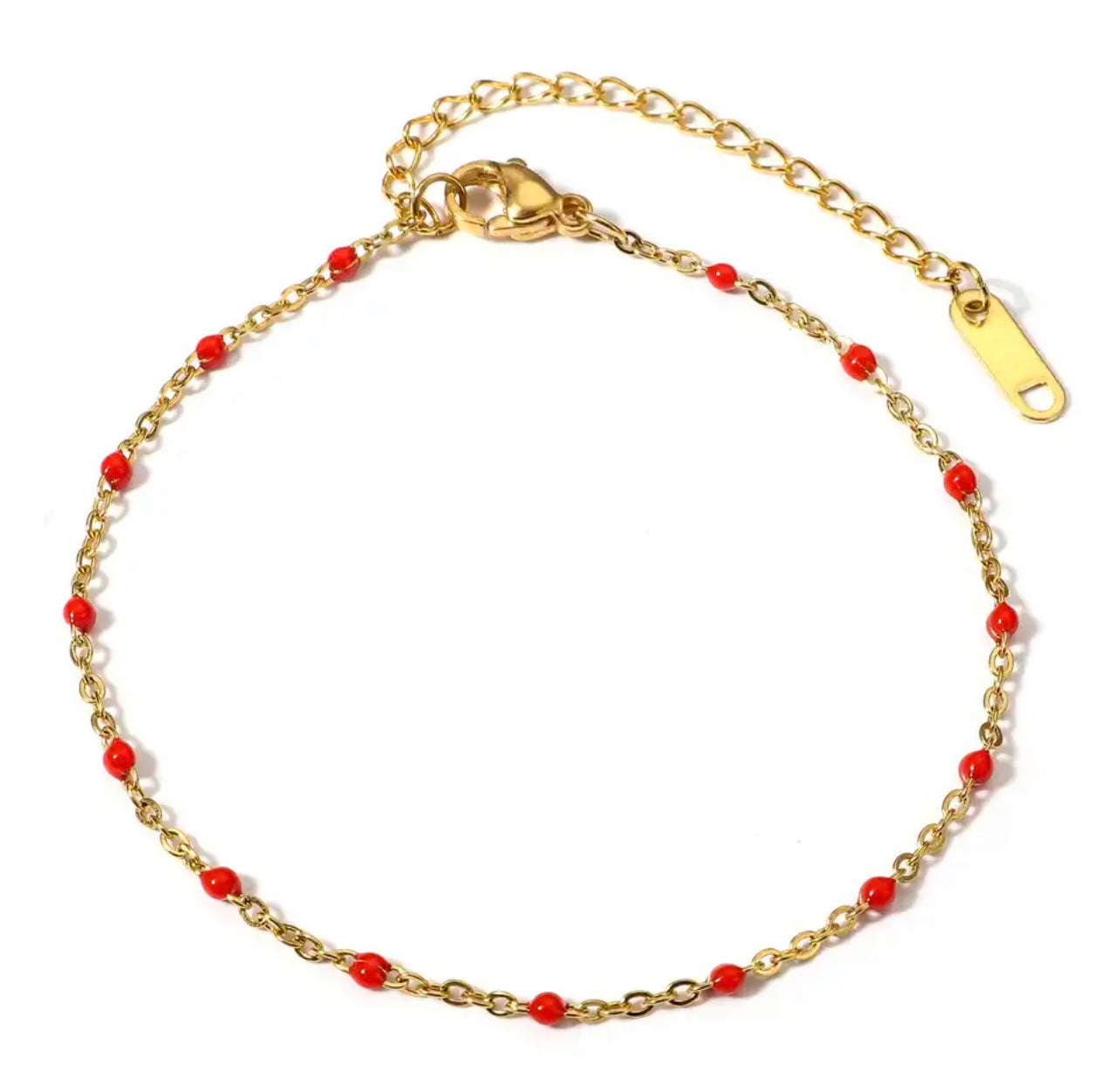 Guldbelagt kirurgisk stål, nikkelfri og vandfast. Smykket tåler vand, sved, parfume og mister ikke farven
