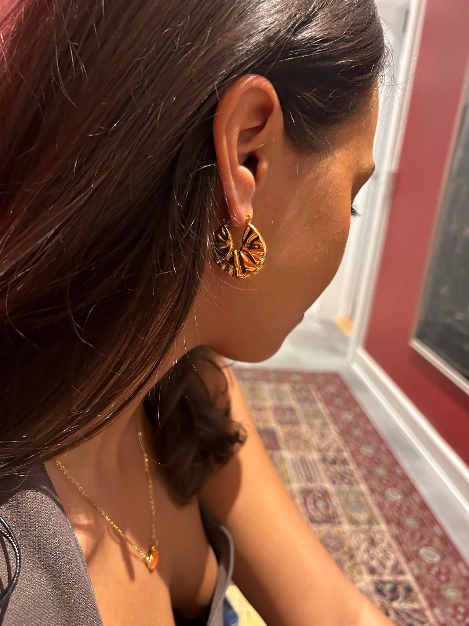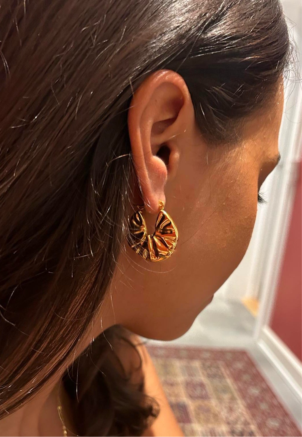 18k guldbelagt kirurgisk stål, nikkelfri og vandfast. Smykket tåler vand, sved, parfume og mister ikke farven