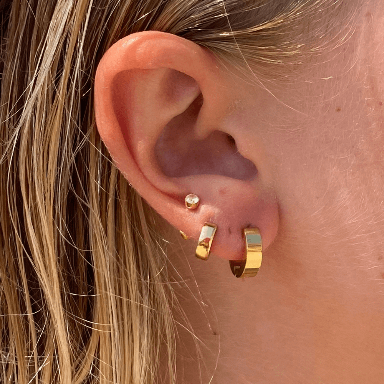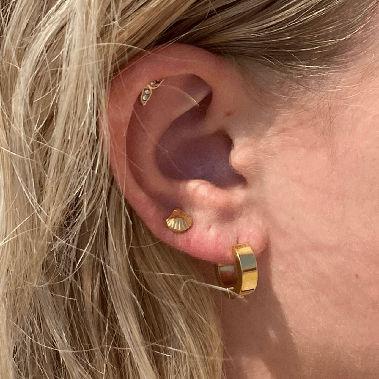 18k guldbelagt kirurgisk stål, nikkelfri og vandfast. Smykket tåler vand, sved, parfume og mister ikke farven