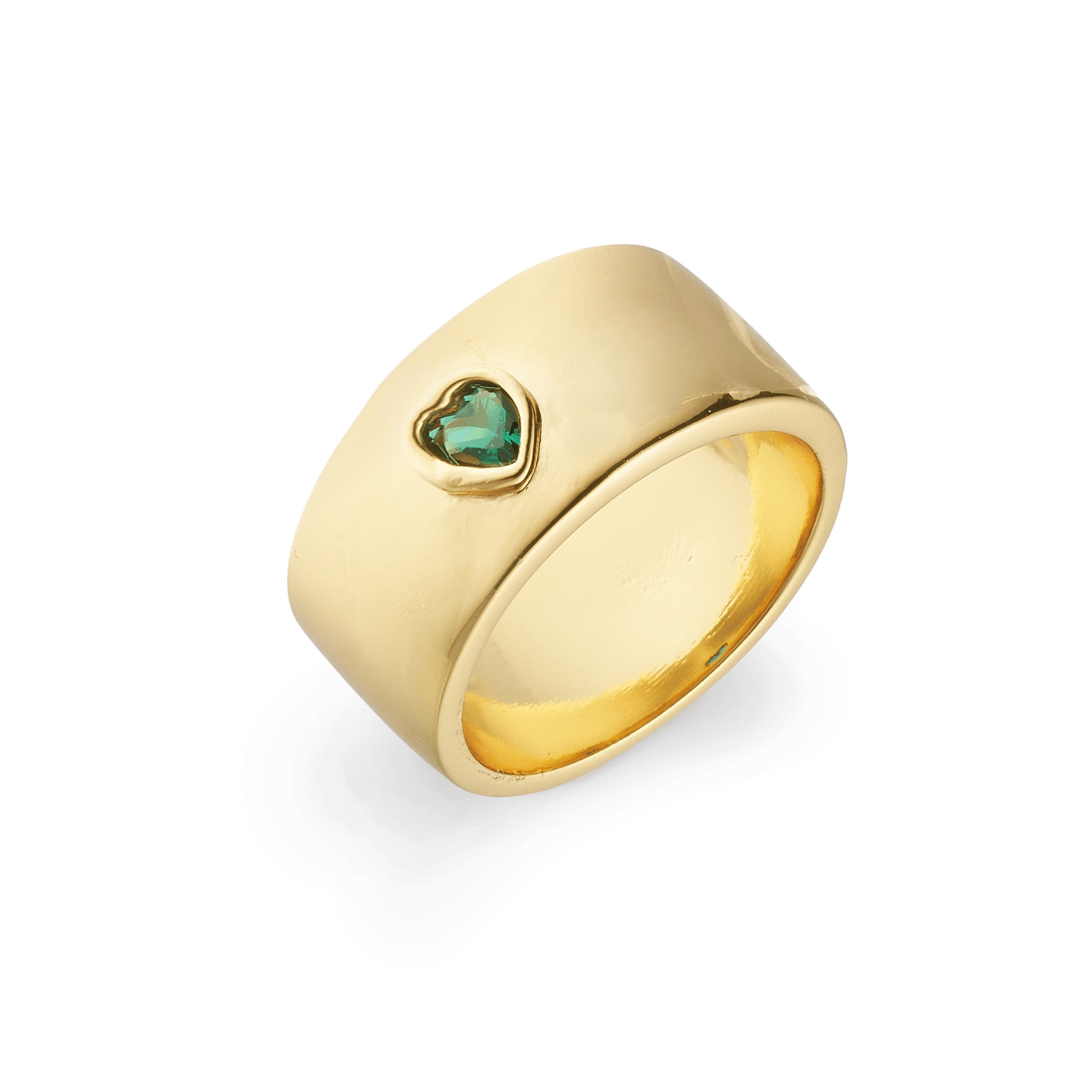 Guldbelagt kirurgisk stål, nikkelfri og vandfast. Smykket tåler vand, sved, parfume og mister ikke farven