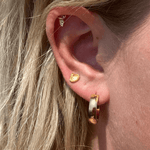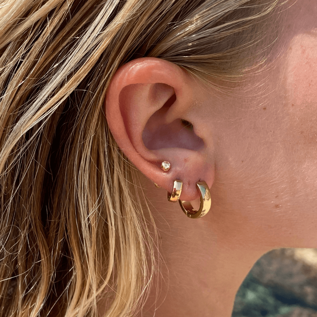 18k guldbelagt kirurgisk stål, nikkelfri og vandfast. Smykket tåler vand, sved, parfume og mister ikke farven