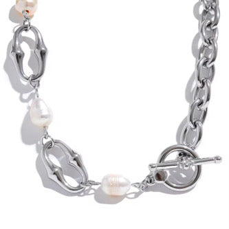 Kirurgisk stål, nikkelfri og vandfast. Smykket tåler vand, sved, parfume og mister ikke farven