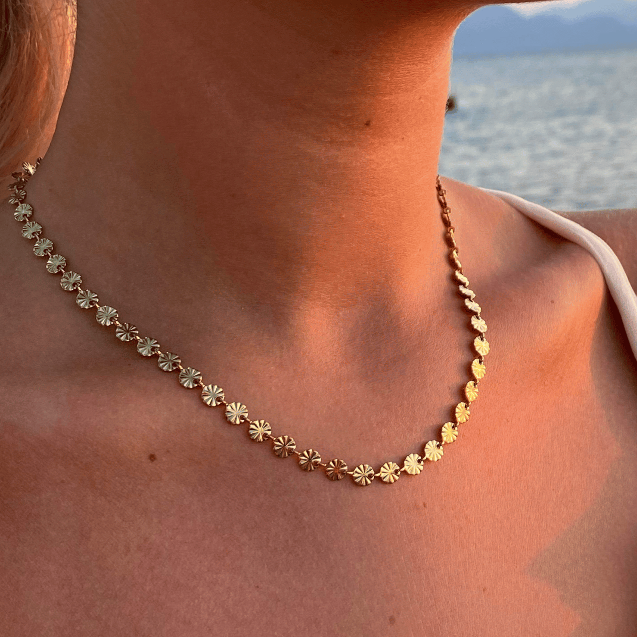 18k guldbelagt kirurgisk stål, nikkelfri og vandfaste. Smykket tåler vand, sved, parfume og mister ikke farven