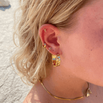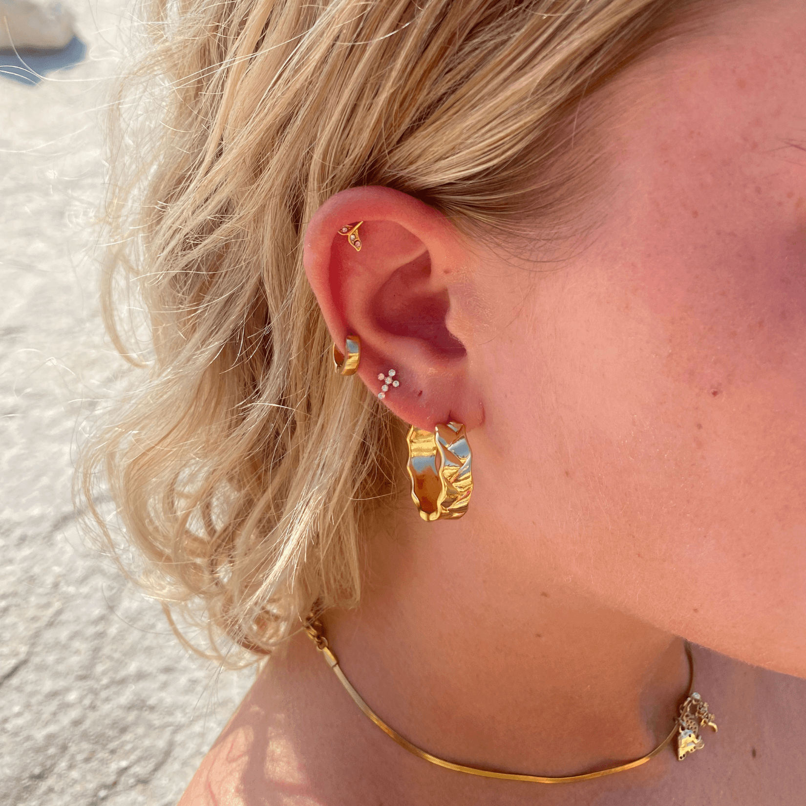 Guldbelagt kirurgisk stål. Øreringene er vandfaste og mister ikke farven