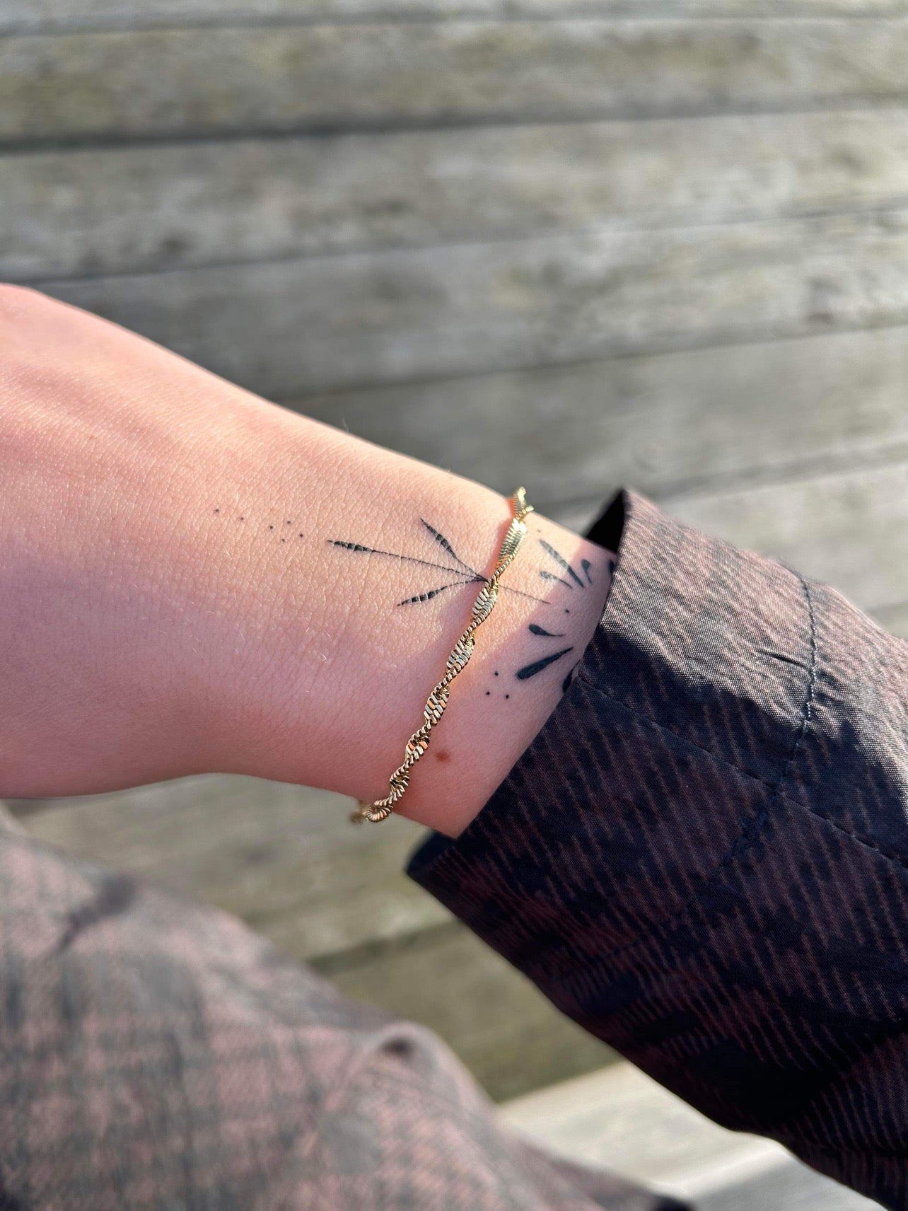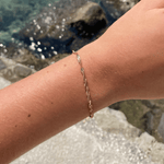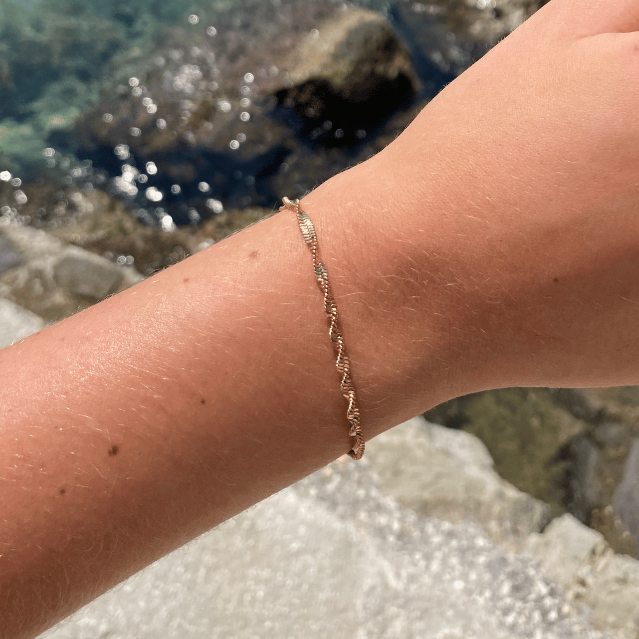 18k guldbelagt kirurgisk stål, nikkelfri og vandfast. Smykket tåler vand, sved, parfume og mister ikke farven